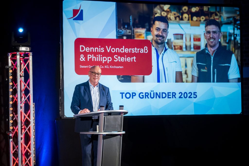 Prämiert wurden mit Britta Ambach eine Top Gründerin sowie die Top Gründer Philip Steiert und Dennis Vonderstraß (eingereicht werden konnten Gründungen aus dem Zeitraum 2021-2024). Zusätzlich wurde Lino Ferda für die Top Geschäftsidee im Handwerk ausgezeichnet (Gründung 2023-2025).