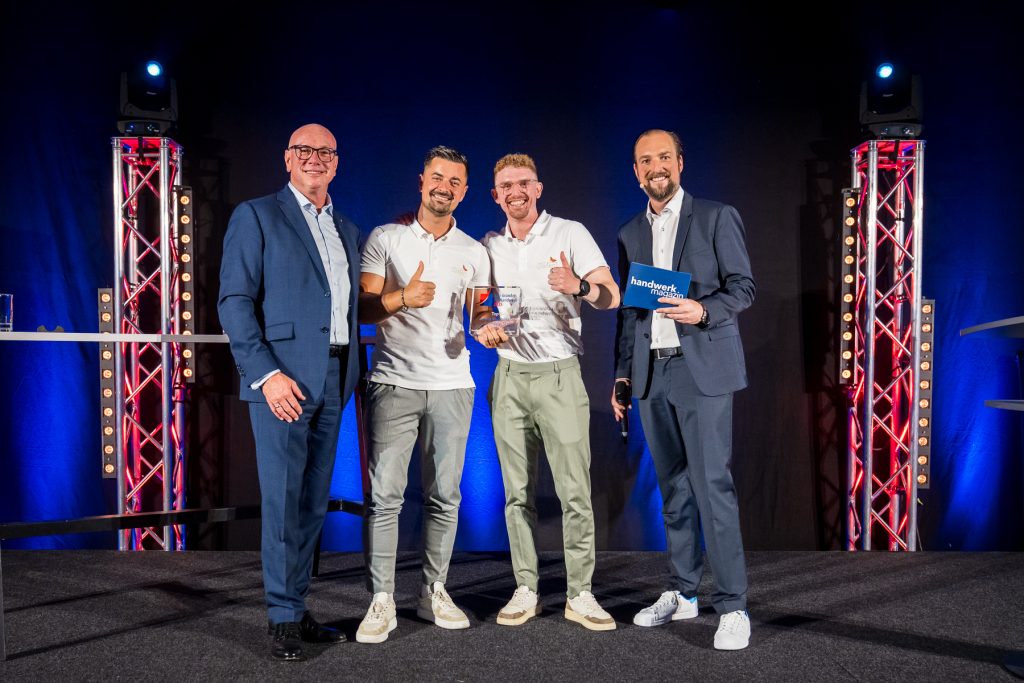 Preisträger Lino Ferda und seinem Vater Peter war klar: Wer künftig die begehrten Fachkräfte im SHK-Handwerk (Sanitär, Heizung, Klima) gewinnen möchte, muss professionelle Strukturen schaffen und attraktive Arbeitsplätze bieten. Um das zu erreichen, hatte der Bachelor of Engineering eine ungewöhnliche Idee: Er fragte den Inhaber seines ehemaligen Ausbildungsbetriebs, ob er nicht mit dem Familienbetrieb der Ferdas fusionieren wolle. Aus diesem Gedankenblitz entstand mit HEEET in Siegen aus zwei Familienbetrieben eine schlagkräftige, moderne Marke mit klaren Strukturen und Entwicklungsperspektiven – ein Umfeld, in dem ambitionierte Fachkräfte gerne arbeiten.